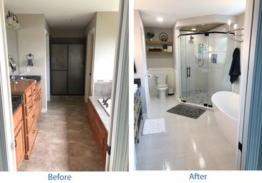 Ryan gave the homeowners a complete makeover of their Master Bathroom while correcting water damage from a leaking drain.